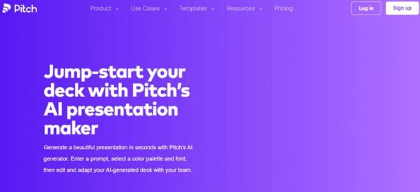 Pitch is another reliable tool that provides AI presentation services. It helps businesses with pitch decks, educational materials, assignment reports, data analysis, and other related presentation projects. Yes, you read that right!