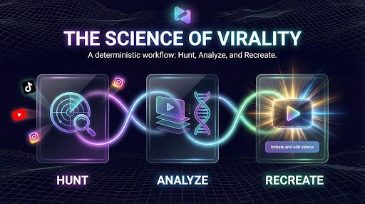 Creating viral videos follows a clear professional workflow: Discover what works, break it down, then rebuild it.