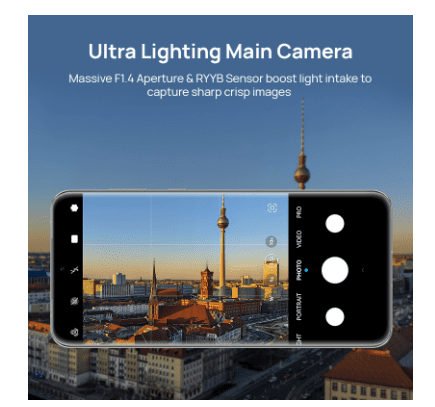 Complementing the RYYB sensor is the industry’s giant F2.1 aperture Periscope telephoto camera, accommodating more light and enhancing the photo quality. Its unique periscopic design magnifies the image without compromising on the slimness of the device.